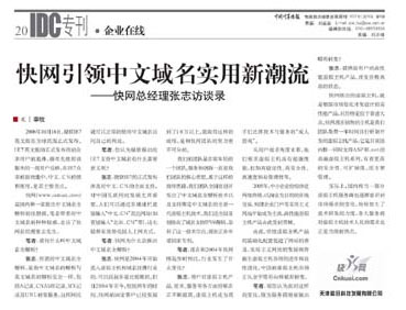 2006年10月18日,微软IE7英文版在全球范围正式发布。IE7英文版的正式发布得到众多用户的追捧,据率先使用该版本的一批用户反映,在IE7众多的新功能中,中文.CN的便利使用,是其主要亮点。 快网(www.cnkuai.cn)是国内第一家推出中文域名全解析的注册商。笔者带着对中文域名的种种疑惑,走访了快网总经理张志先生。 笔者:请问什么叫中文域名全解析? 张志:所谓的中文域名全解析,是指中文域名的解析与英文域名的解析完全一样,包括A记录、CNAME记录、MX记录及URL转发服务。这样网民就可以正常的使用中文域名访问自己的网站。 笔者:您认为微软推出的IE7支持中文域名有什么重要意义呢? 张志:微软IE7的正式发布涉及对中文.CN的全面支持,对中国互联网的发展尤其重要。人们可以通过在地址栏直接输入“中文.CN”直达网站(如直接输入“北京.CN”等),这无疑将有效简化国人上网方式。 笔者:快网为什么会推出中文域名全解析? 张志:快网是2004年开始进入虚拟主机和域名注册行业的,可以说起步是比较晚的。但自2004年至今,短短两年的时间,快网的固定客户已经发展到了10万以上。能取得这样的成绩,是和快网团队的努力密不可分的。 我们的团队是非常年轻的一个团队。服务和创新一直是我们团队的核心思想。基于这样的指导思路,我们团队全国首创开发出了中文域名全解析技术以及支持绑定中文域名的全新一代虚拟主机技术。我们还全国首创推出了域名支持IPV6解析,添补了这一技术空白,现在正在申请国家专利。 笔者:现在和2004年快网刚起步时相比,行业发生了什么变化? 张志:用户对虚拟主机产品、技术、服务等各方面的要求正不断提高。虚拟主机成为高手们比拼技术与服务的“成人游戏”。 从用户需求角度来看,他们要求虚拟主机具有超强性能,比如高稳定性、高安全性、高速度和易管理性等。 2005年,中小企业纷纷涉足网络营销,以淘金为目的的在线交易、构建企业门户等实用主义网站开始成为主流,高性能虚拟主机产品由此受到青睐。 由此,传统虚拟主机产品的基础化配置促进了网站的普及,实用主义网站的发展则将催生虚拟主机市场的进步和良性进化,中国的虚拟主机市场正从金字塔形向棒槌形转变。 笔者:那您认为面对这样的变化,做为服务商需要做出哪些转变? 张志:提供给用户的高性能虚拟主机产品,改变价格高昂的状态。 快网推出的虚拟主机,就是根据市场变化开发设计的高性能产品,且价格定位于普通大众。快网现在销售的主机是我们团队花费一年时间自行研制开发的虚拟主机产品,它是目前国内惟一同时支持ASP和.net的高端虚拟主机系列,有着更高的安全性、可扩展性,还方便管理。 实际上,国内相当一部分虚拟主机服务商也逐渐意识到市场需求的变化,纷纷加大了技术研发的力度,各大服务商对虚拟主机技术人员的需求也正是当前的热点。