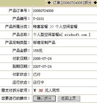 套餐折分主要应用于套餐订单。客户有时有特殊需求,需要将套餐折分成单独的域名、空间。也就是说,将原来的一个订单,变成两个或者三个单独的订单。这种折分就叫套餐折分。