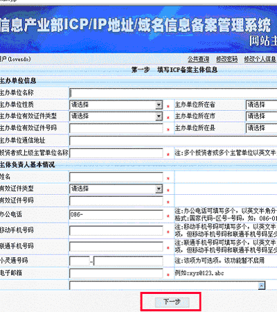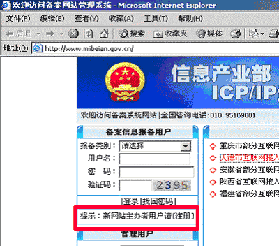 1、登陆信息产业部备案网站:http://www.miibeian.gov.cn