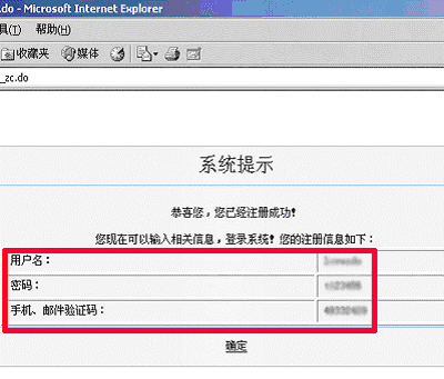 6、在下图中,请勿必牢记您的用户名、密码以及手机邮件验证码