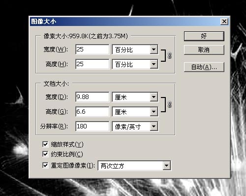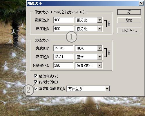 使用图像大小命令,再将图像缩小为最初打开时的大小。羽毛被最大程度保留。