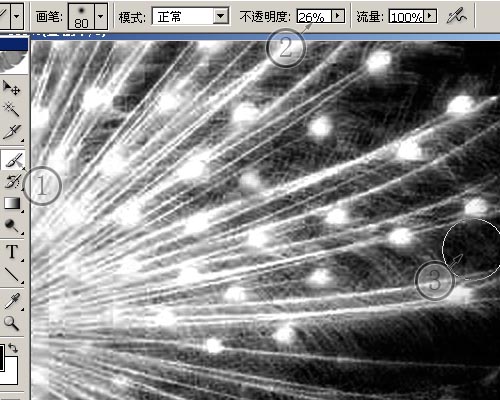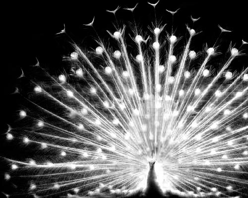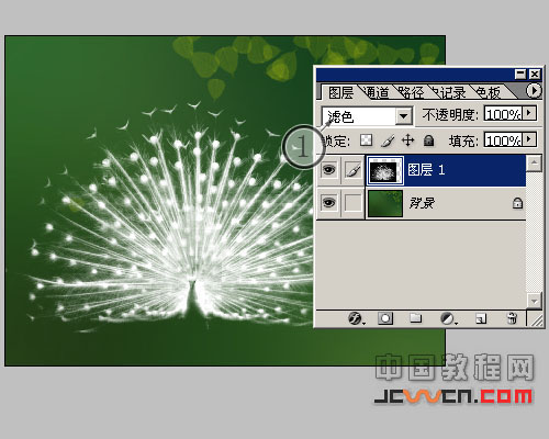 在背景与孔雀层之间建立新层,用黑色软画笔,慢慢涂出影子来。影子是真实的关键,一定要细心制作。作品的效果与制作时间和精力成正比。多练习可以提高以后的制作效率。
