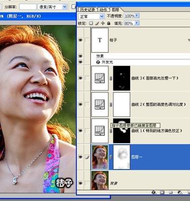 以前我做人物美肤处理最后一步用历史记录还原以前的皮肤,效果也不错,但是最后不太好调整,不如下面加一个原图的增强图层好控制。