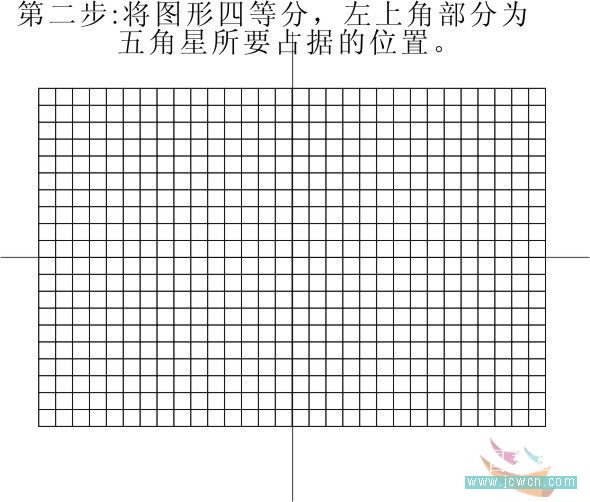 二、将图形四等分,左上角部分为五角星所要占据的位置