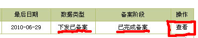三、在出来的备案信息列表中,查看,数据类型为:下发已备案,备案阶段为:已完成备案的备案信息,如下图: