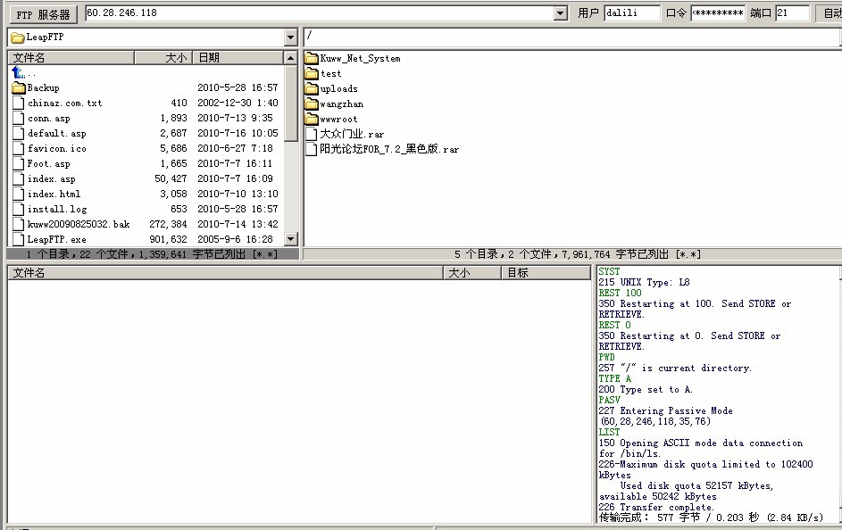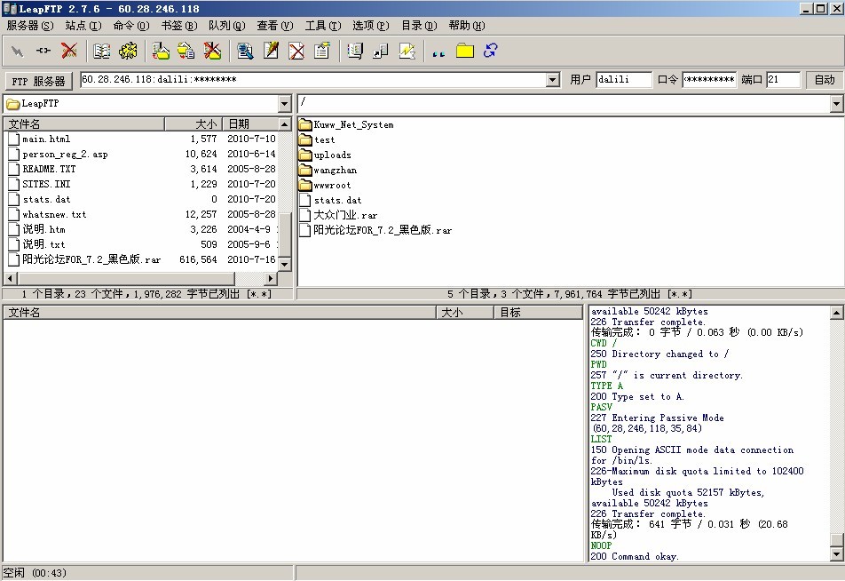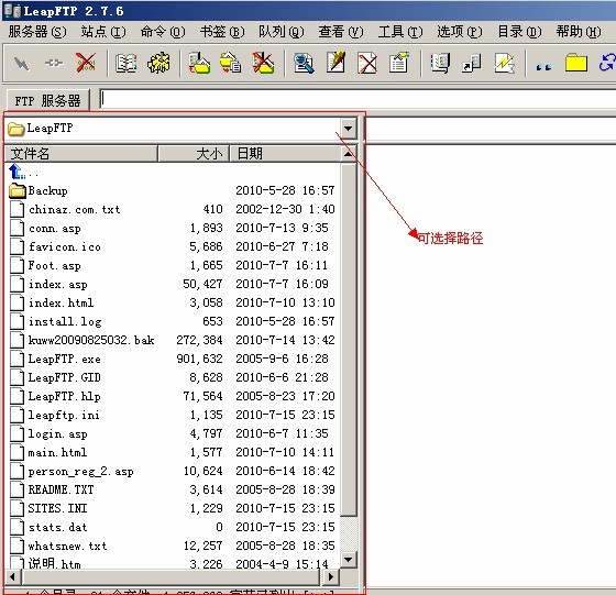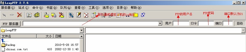 然后您打开FTP的软件以后会是下面图2的画面