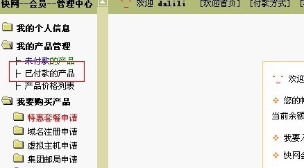 登录以后点击 我的产品管理中的已付款产品,如下图5所示: