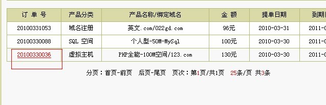 点击以后 点击空间或者套餐的订单号,如下图6所示: