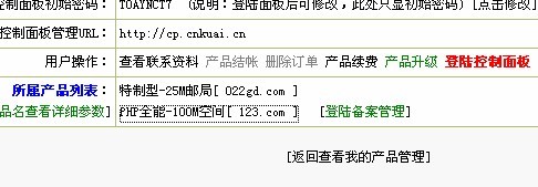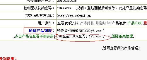 还是这个地方 您可以看到除了有所属产品列表 还有一个红色字的登录控制面板点击他,如下图17所示: