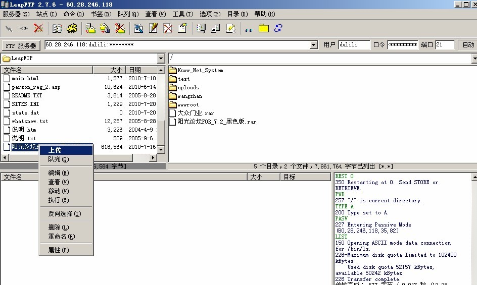 从下图12,图13,图14可以看到 如果您要上传某个文件 您右键这个文件 会显示上传 您点击就可以