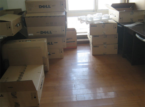 近期,我公司再次新购了一批Dell原装服务器,准备上架,下图为我公司技术人员在公司准备服务器的部分图片.