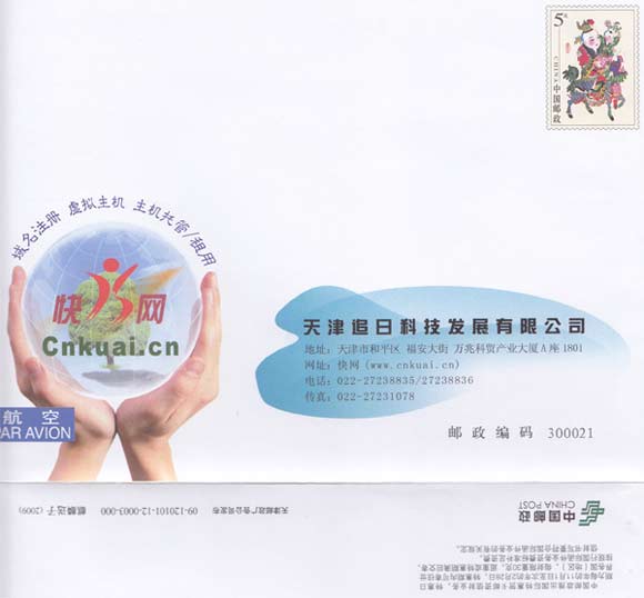 快网委托中国邮政总局印制的标准专用信封(中号,带邮资的专用航空信封)