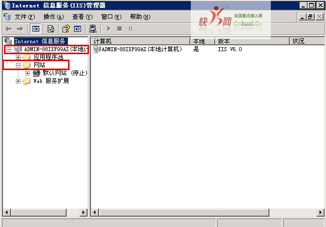 二、打开IIS管理器后,如下图,依次点开,本地计算机,网站;