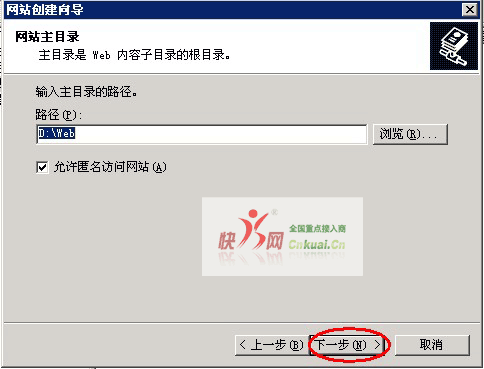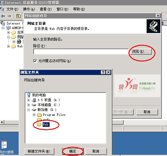 七、再点下一步,选择网站路径;点击浏览,会弹出目录查找窗体;选择您的网站目录;
