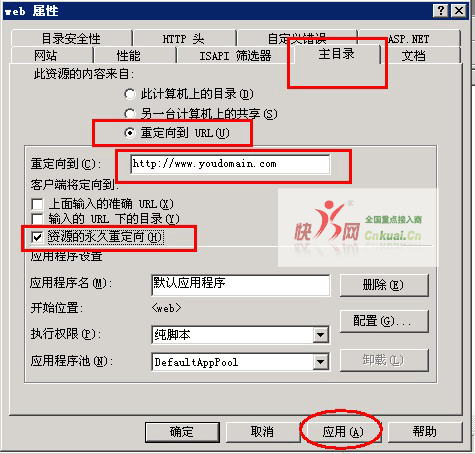 四、还是在主目录选项卡下面,有一个重定向到URL,该选项就是做重定向用的,一般配制选项可以按下图所示选择即可。