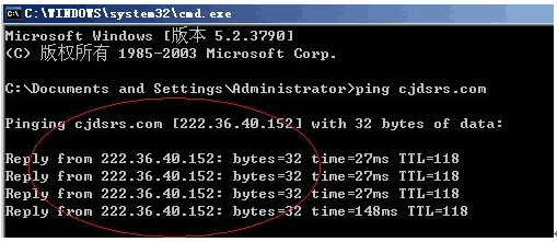 点开您电脑的开始--》运行cmd--》输入: ping 您的域名