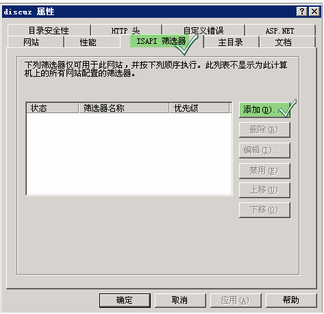 3.在弹出的窗口里选择“ISAPI筛选器”