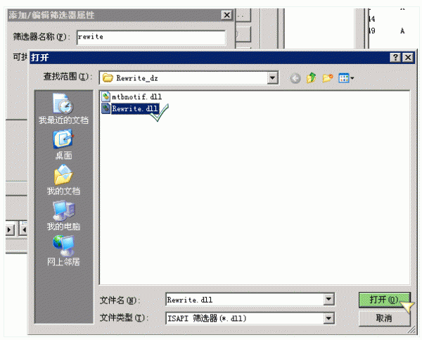 4.上图中点击“添加”,在弹出的窗口里“筛选器名称”填写“rewrite”
