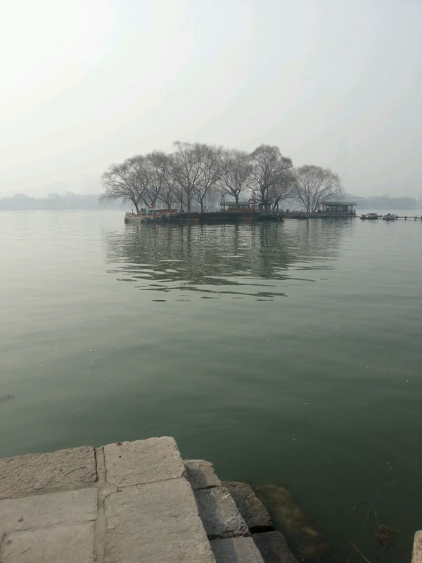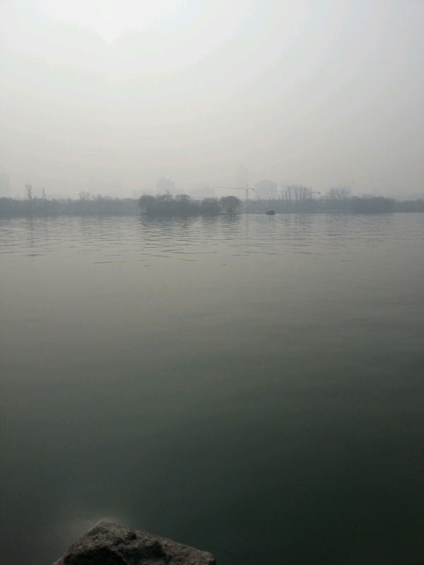 可恨的雾霾,平静的湖水。不会是容么么要出来了吧?
