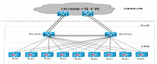 • 天津电信网络资源与基础设施 天津电信在天津市范围内依托天津电信IP 城域网向用户提供互联网服务。津电信城域网的建设分为三个相对独立的层次:核心层、汇聚层和接入层,如图所示: